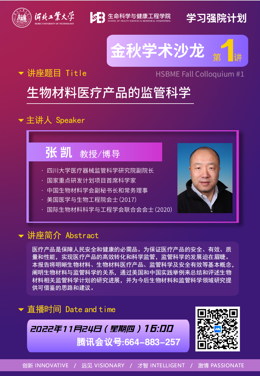 讲座题目:生物材料医疗产品的监督科学