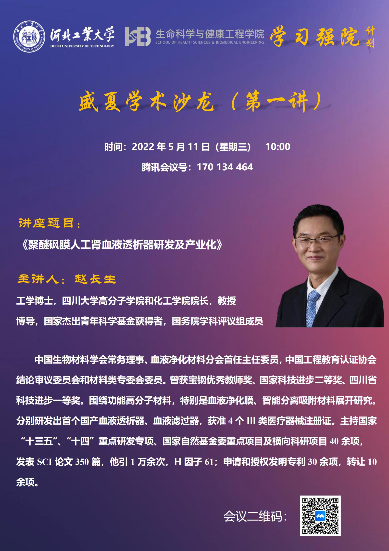 讲座题目:聚醚砜膜人工肾血液透析器研发及产业化