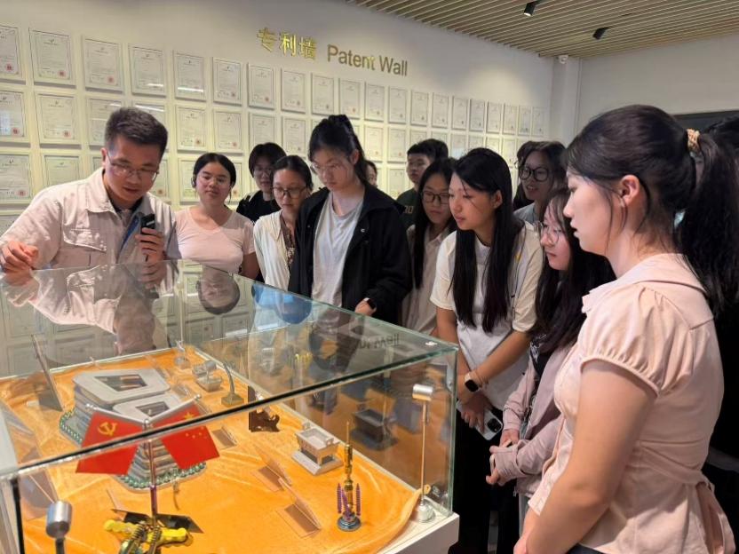 10日上午,师生首站抵达健适医疗旗下的天津瑞奇外科器械股份有限公司。作为国内微创外科手术器械领域的代表性企业,瑞奇外科以“精准、微创、智能”为核心研发方向,其腔镜吻合器、超声刀等核心产品在临床应用中广受认可。在企业技术负责人的带领下,同学们依次参观了研发中心、精密制造车间及产品展示厅。从高精度模具设计到自动化生产线运作,从手术器械的微观结构到临床使用场景模拟,技术专家结合实物演示,详细讲解了“从实验室设计到产业化落地”的全流程。“原来课本里的‘生物力学适配’‘器械结构设计’这些概念,在真实器械上体现得这么直观!”田嘉琪同学在观察腔镜吻合器内部结构时感叹。随后企业技术总监、质量、人力的负责人给同学们介绍了职业发展路径和企业的招聘需求。