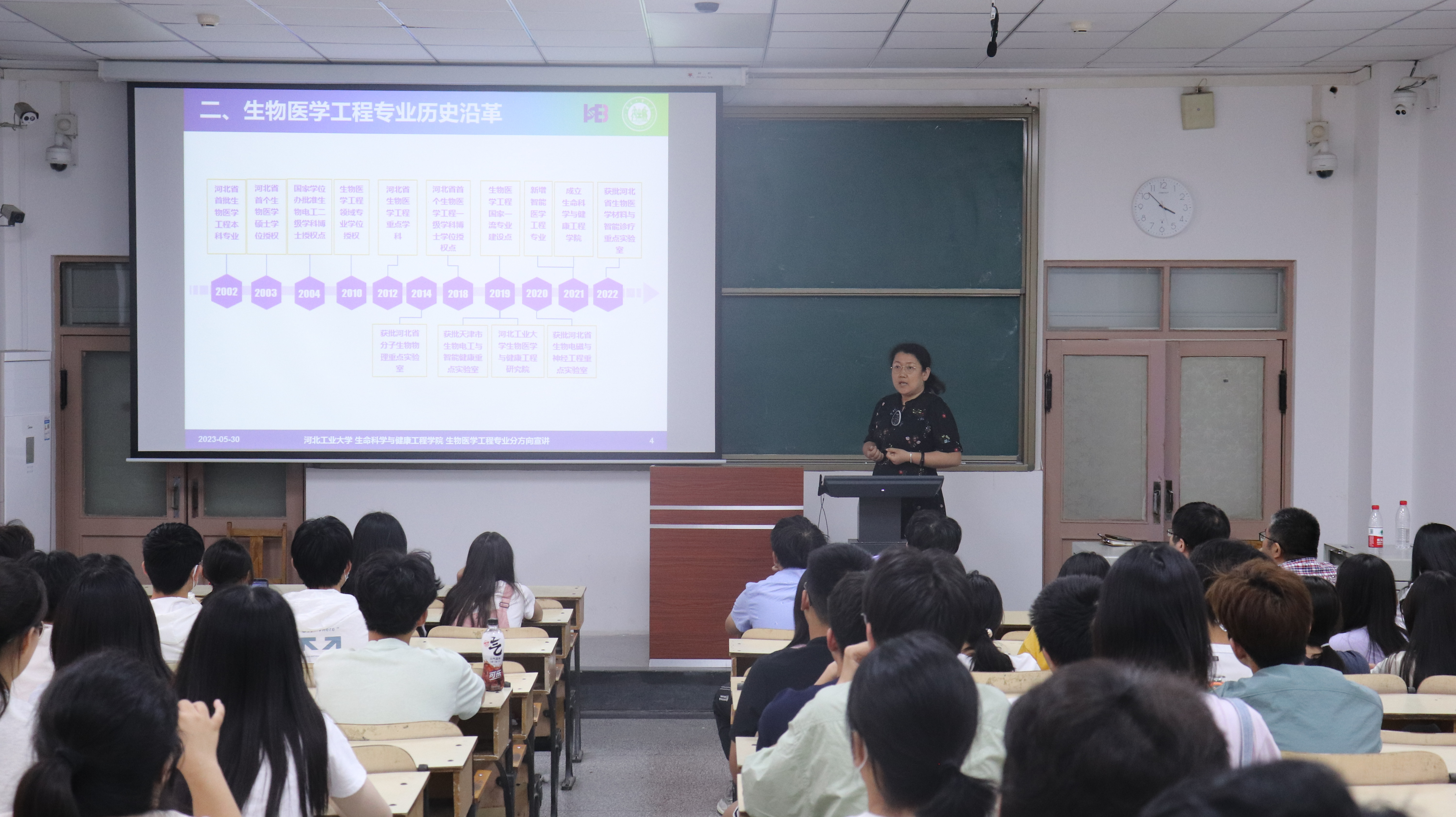 为体现交叉学科优势和地域特色,服务“健康中国”的国家战略和京津冀区域大健康产业发展需求,秉承“工学并举”办学特色,培养面向生命健康领域的新时代专业人才,生物医学工程专业2022级在2023年秋季学期开始分电子信息与仪器方向和生物医学材料与器件方向培养。公司于5月30日下午为2022级全体生物医学工程本科生召开方向宣讲会,生物医学工程系系主任杨硕、医学科学与工程系系主任周欢、医学科学与工程系副系主任王晖参与宣讲,宣讲会由辅导员谭赛丹主持。