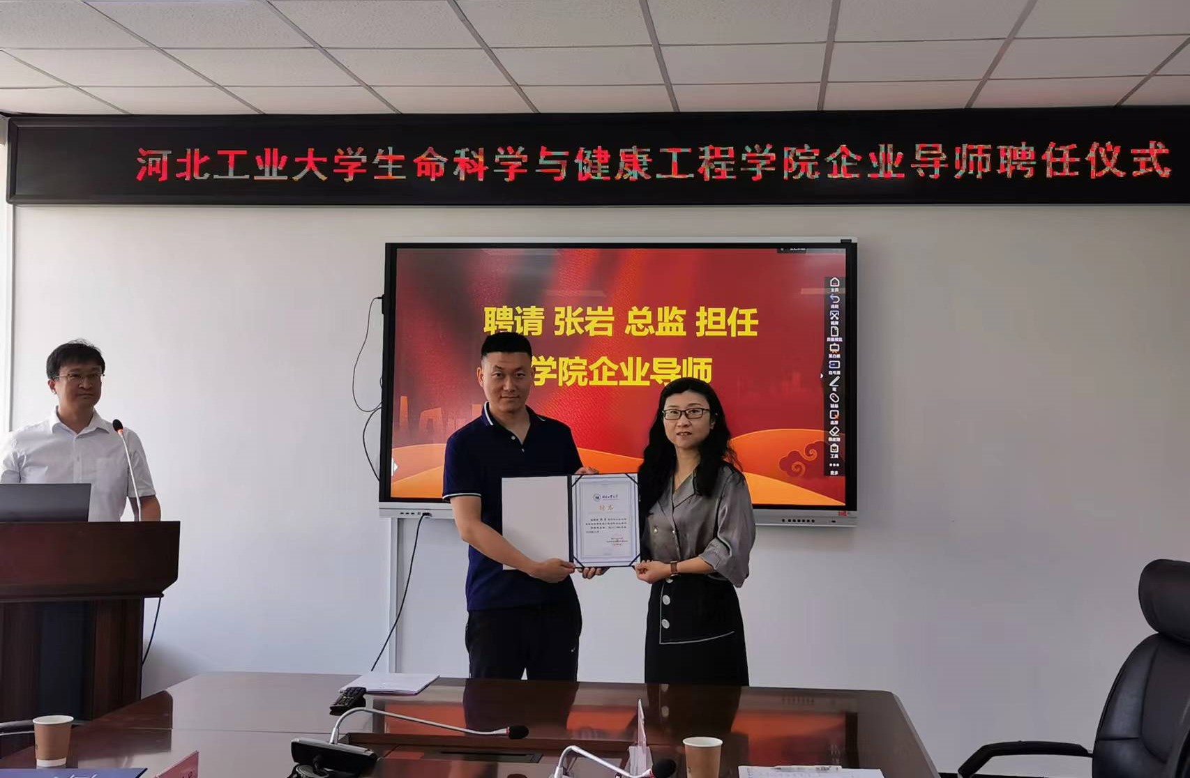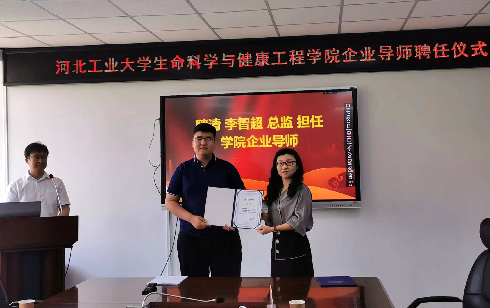 5月31日下午,公司邀请博瑞康股份有限公司的林放工程师作为企业导师代表参加答辩会,并为林放工程师颁发了公司企业导师聘书。答辩会上,在博瑞康股份有限公司、北京悦琦创通科技有限公司和大熊(天津)医疗科技有限公司开展校企合作毕设课题的六位员工分别进行了答辩。他们表示,在企业三个多月的学习生活提高了他们的计算机编程能力,加深了他们对毕业设计课题的理解和对生物医学工程专业应前景的认识。