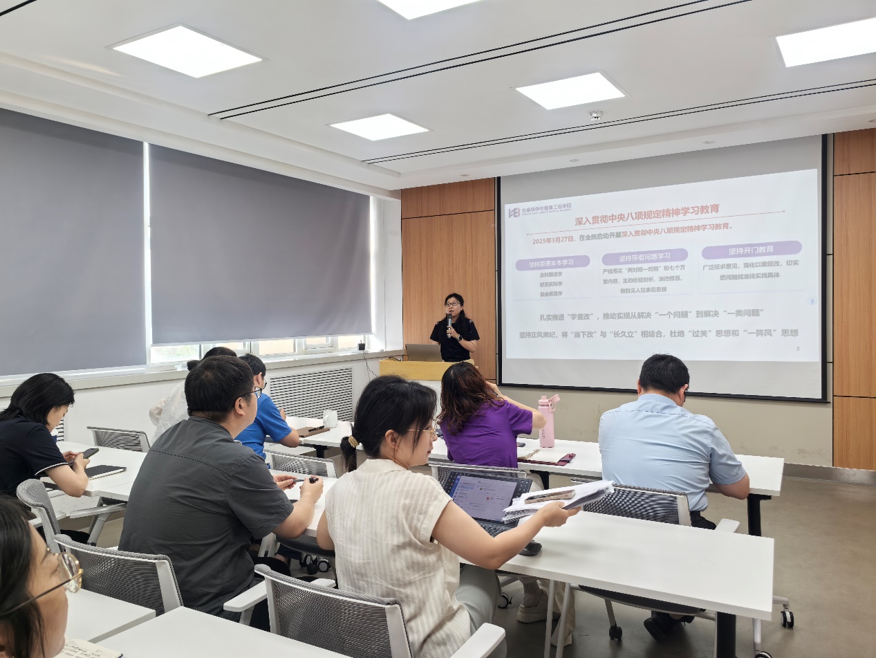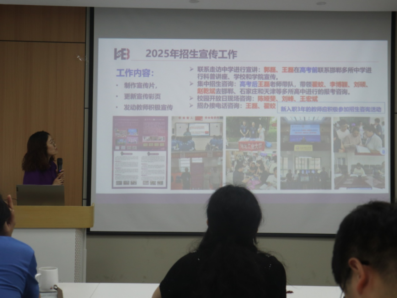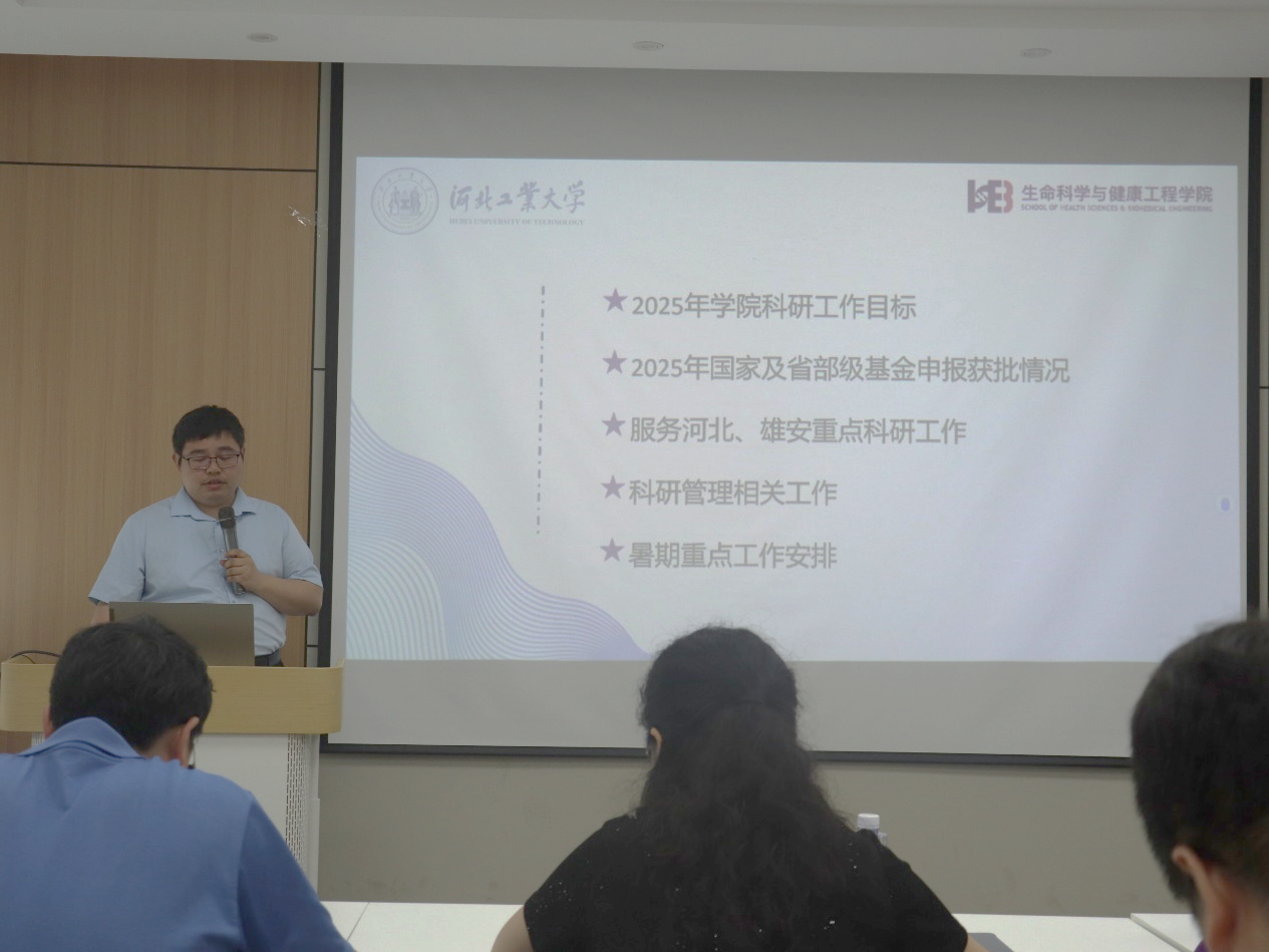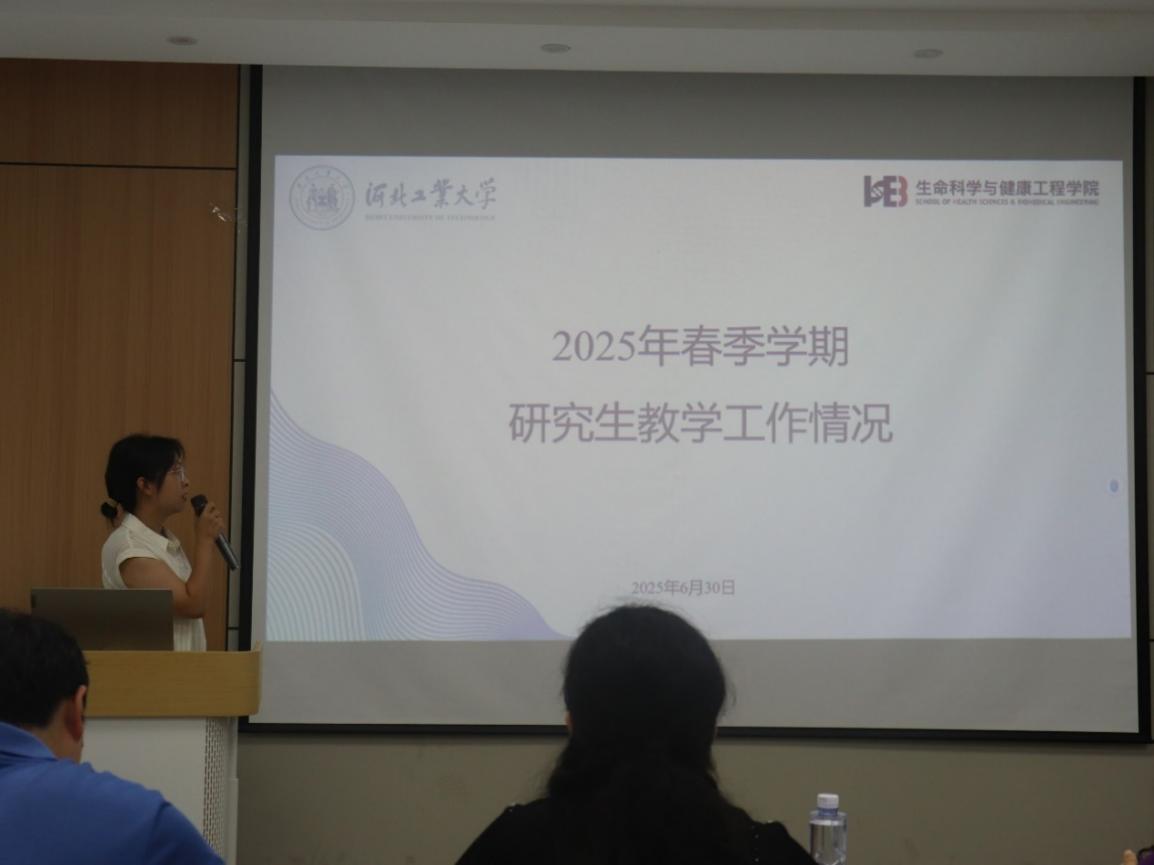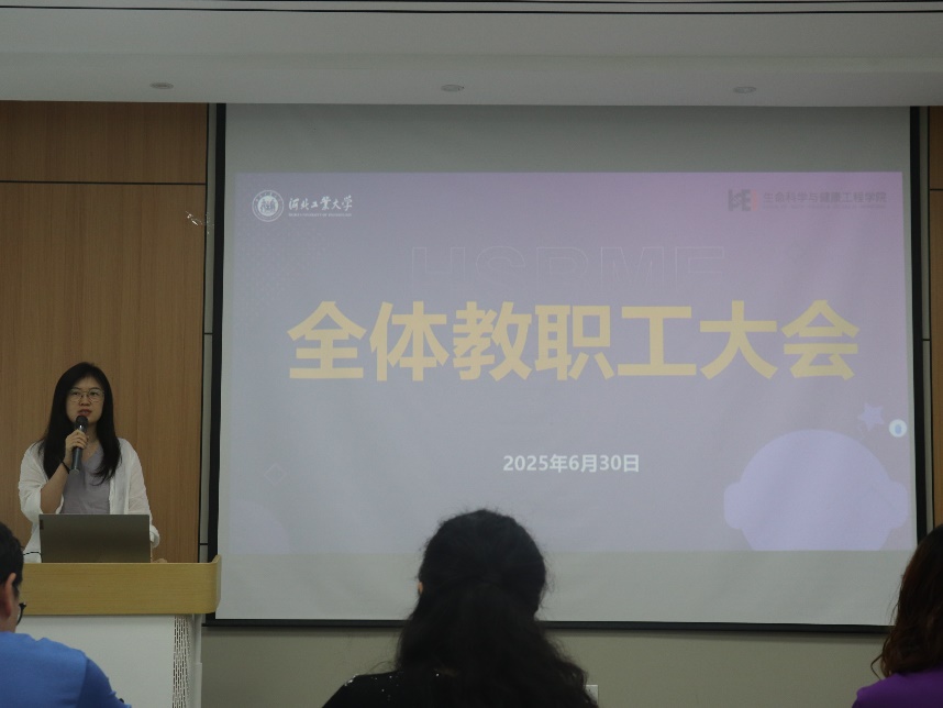副经理邢成芬主要汇报本学期课堂教学情况、生物医学工程专业分方向结果、2025年本科招生宣传工作,介绍了上半年主要活动与交流情况,包括与马克思主义公司开展课程思政专题交流、“AI赋能教学”教师经验交流活动、以及成立“全国AI+养老康复产教融合共同体”等;最后她提出未来的教学规划重点,鼓励老师多参加课程建设、教学竞赛、教材建设、教改项目等。
