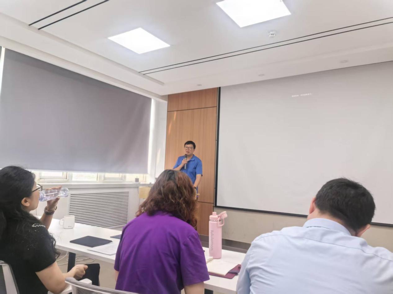 副书记张轶分别就上半年公司员工工作、学术节工作、工会工作进行了总结;汇报了现阶段公司就业情况,介绍暑期大家访、社会实践等工作安排,提示各位导师加强暑期留校员工管理。
