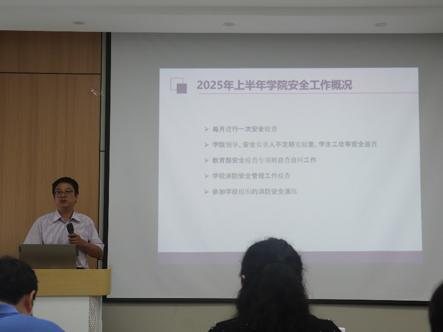 实验中心主任王洪水老师就实验室安全巡查情况进行通报,并做了暑期实验室安全工作提示。