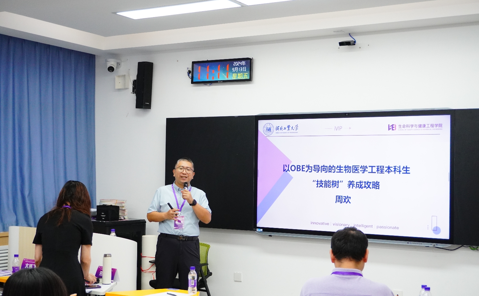 培养方案与专业建设模块,由公司本科生院质量管理与评估中心主任徐晓明和公司医学科学与工程系主任周欢负责。徐晓明老师介绍了培养方案一体化设计的目标和意义。他强调,一体化设计是为了更好地培养员工全面发展,打造知识、能力和素质协调提升的人才培养模式;周欢老师强调OBE要求我们以员工的实际学习成果为出发点,设计教学内容和方法,最终实现预期的教育目标。他指出,培养生物医学工程人才不仅要传授专业知识,更要注重培养员工的实践技能,这种"技能树"模型要贯穿整个本科培养全过程,通过理论课程、实践课程、项目训练等多种教学环节,循序渐进地提升员工的技能水平。