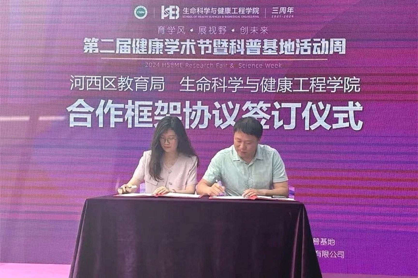 公司党委副书记兼副经理张轶与河西区教育局局长陶子福签订合作框架协议,合作双方将围绕教学研究、课程团队、教育实践等方面开展多方面的合作交流,共享优质科学教育资源,实现品牌创生,为培养更多具有科学素养、创新精神和实践能力的后备人才做出贡献。